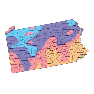 The climate in Pennsylvania is cold in the winter and warm in the summer